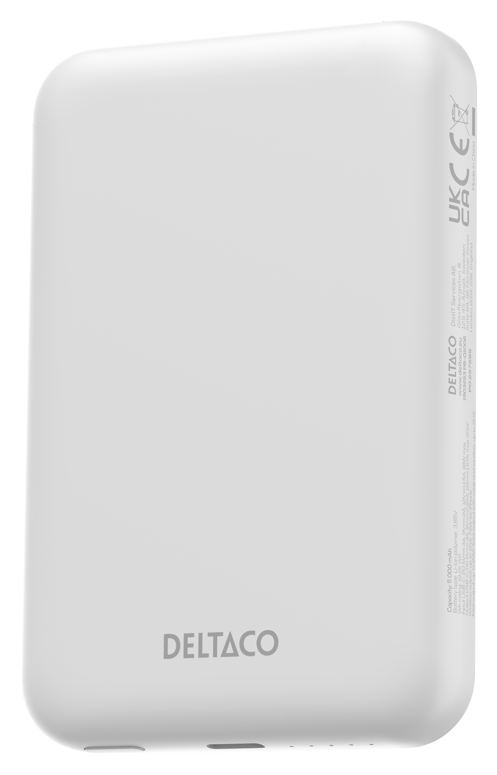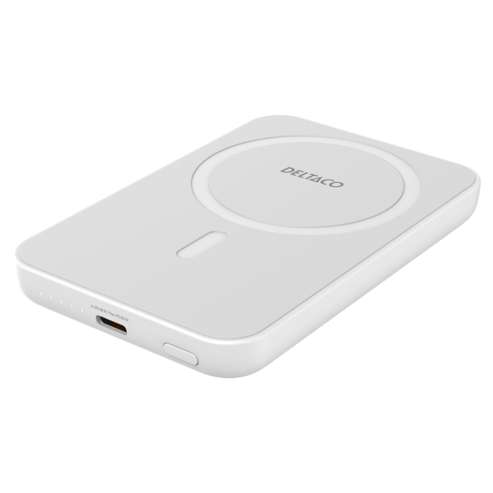 Powerbank 5000 mAh, trådløs lading, PD 20 W, magnet, hvit