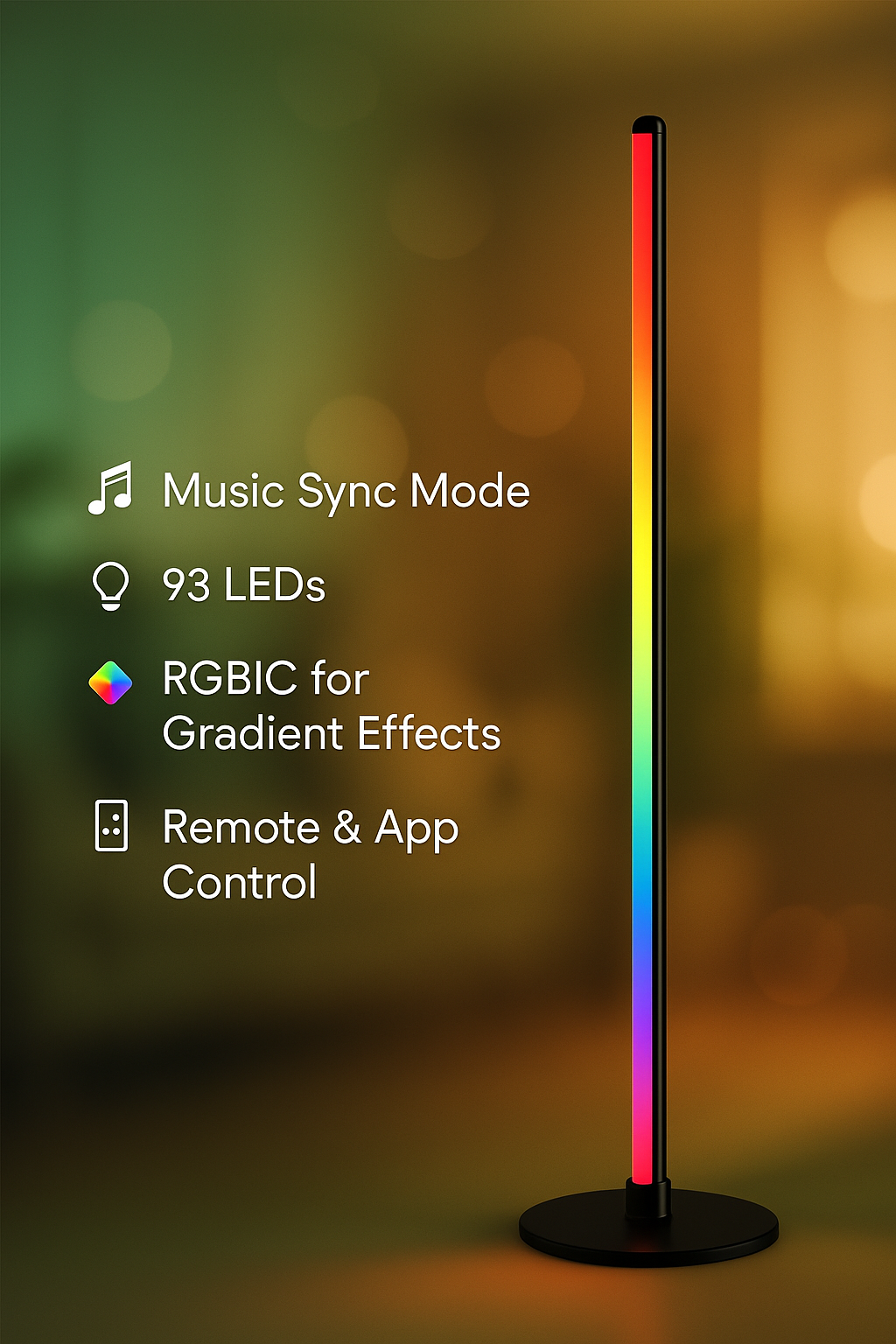 With RGBIC technology, the lamp can display multiple colors simultaneously, creating beautiful gradients and vibrant effects that enhance any environment. Its sleek 1.35 m minimalist design fits seamlessly into living rooms, bedrooms, or gaming setups, adding both style and atmosphere.