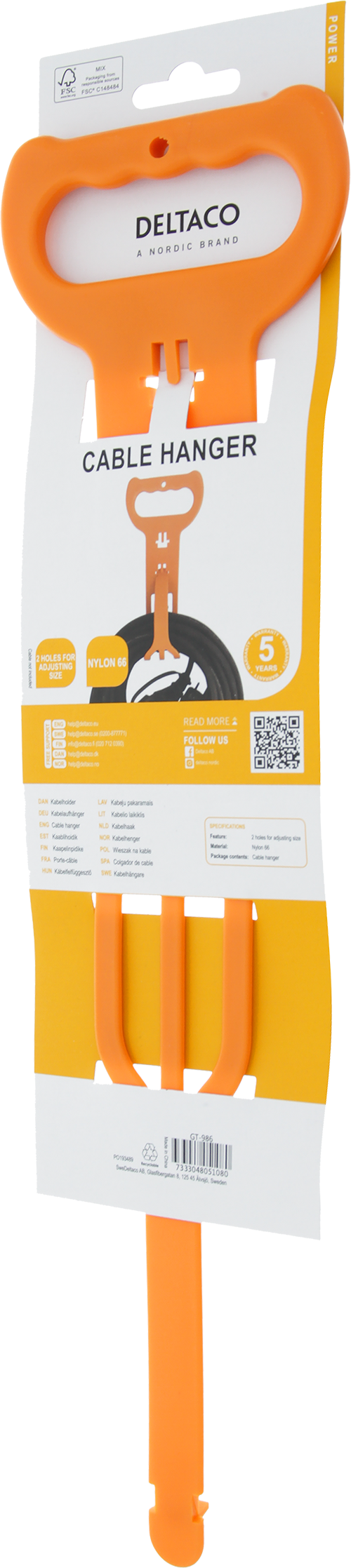 Cable hanger for extension cables, adjustable size, nylon 66, orange