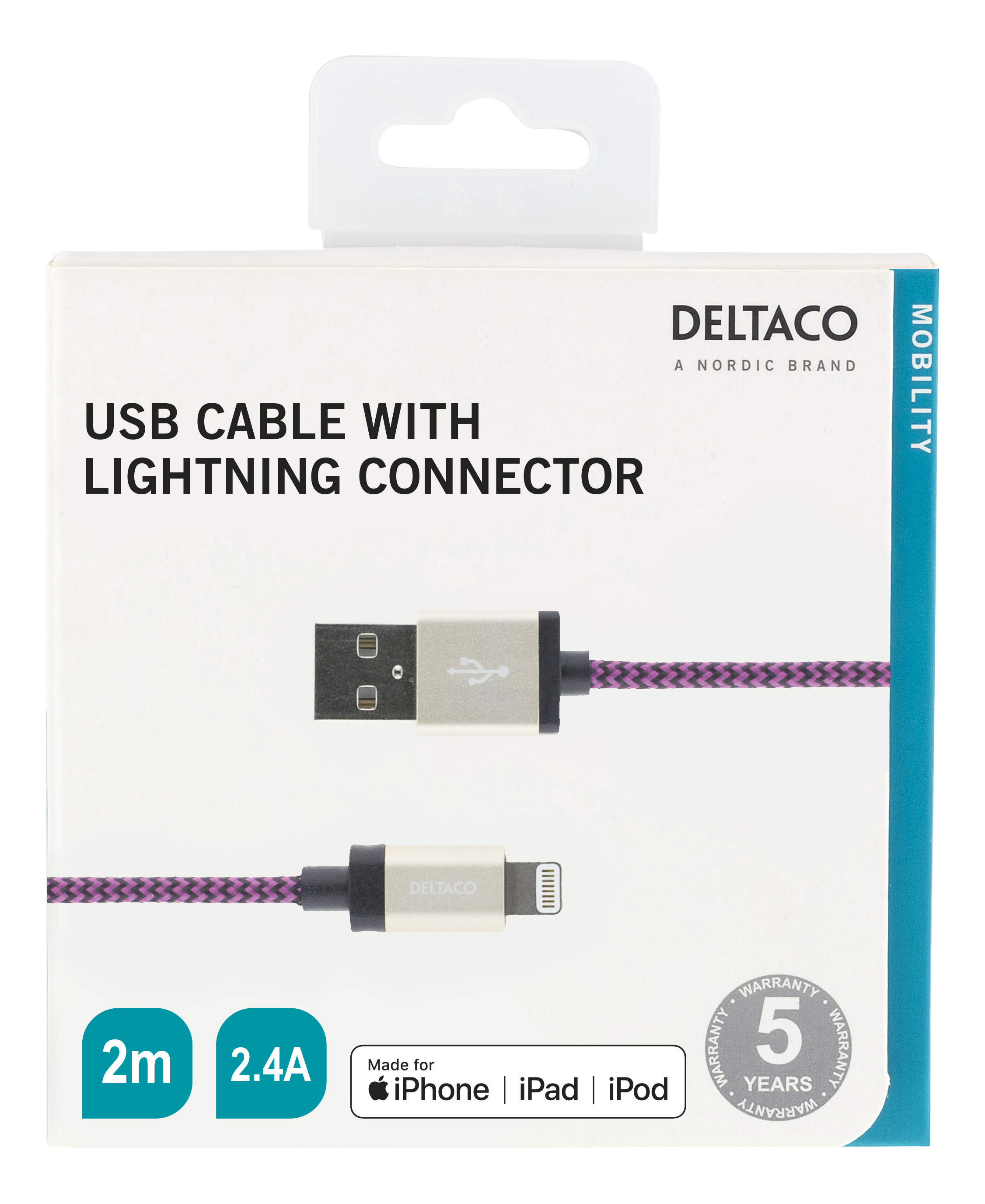 USB - Lightning cable, MFi, Fabric covered, 2m, purple